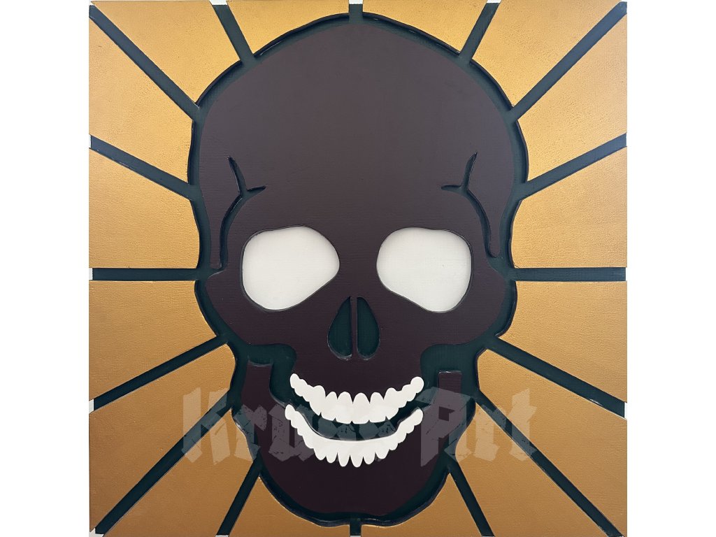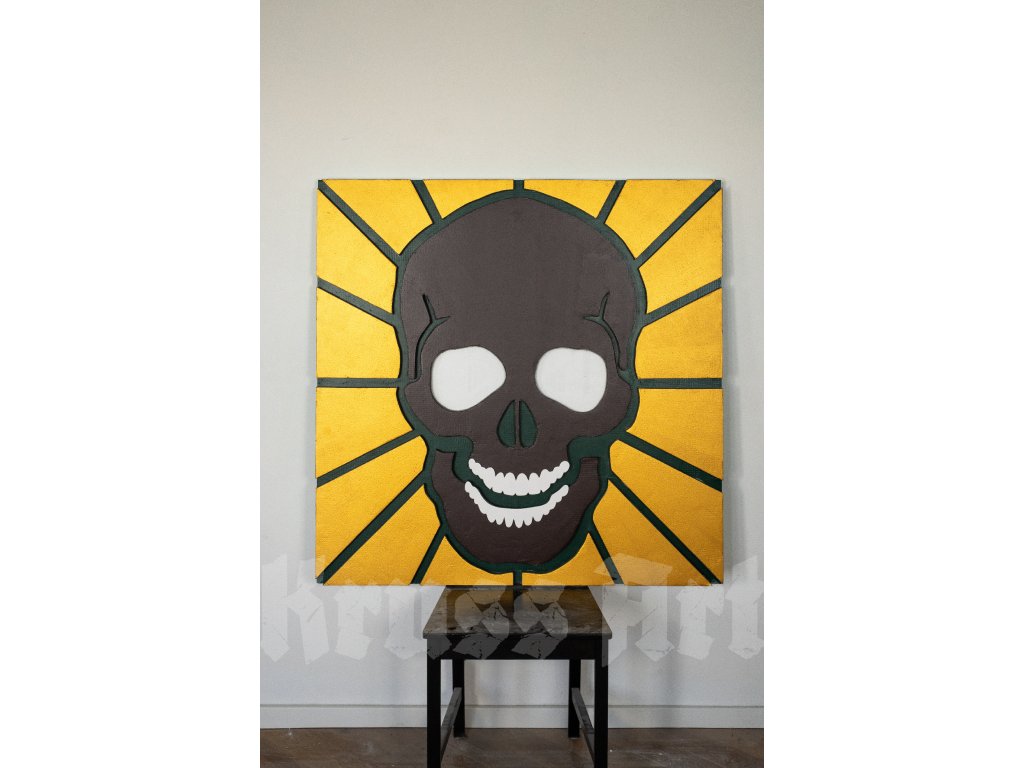 Radiating from the skull are golden rays, symbolizing generosity, trust, and openness toward others. They reflect the ability to brighten someone’s day – inspired by the artist’s friendship with Naomy.