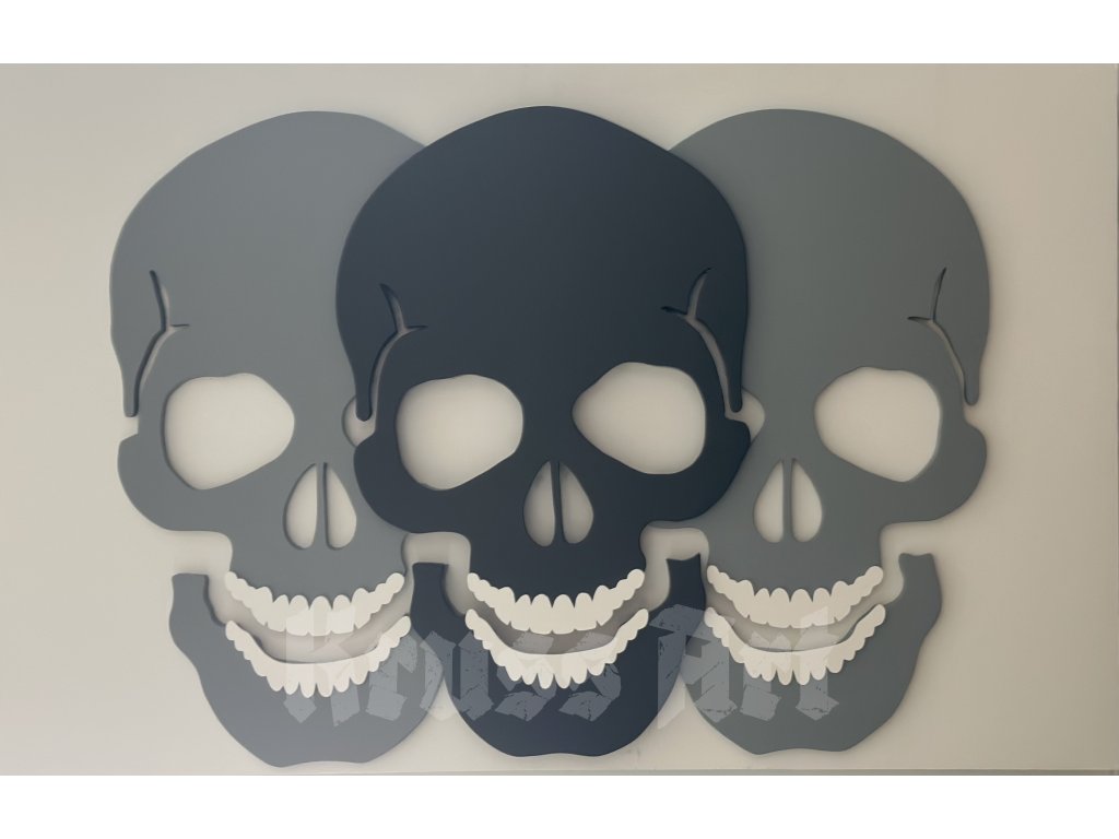 The artwork is made from extruded polystyrene. Each cut-out is layered on a matching polystyrene base. The surface is painted with resin-based colors, creating a smooth, refined finish.