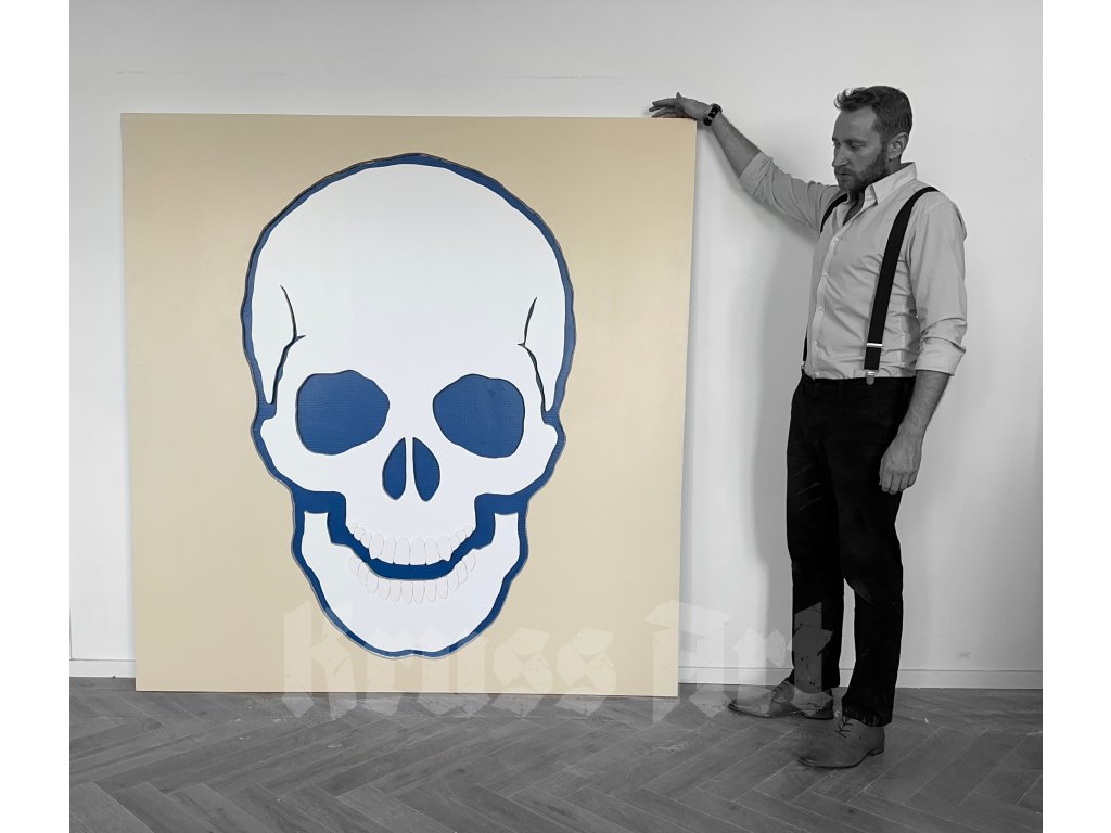 Just like in politics, where a blue tie is meant to evoke honesty and trust, this skull shifts from being a symbol of fear into a sign of transparency and acceptance. The painting invites us to look at life and death from a different perspective – not as something dark, but as a space for peace, trust, and balance.