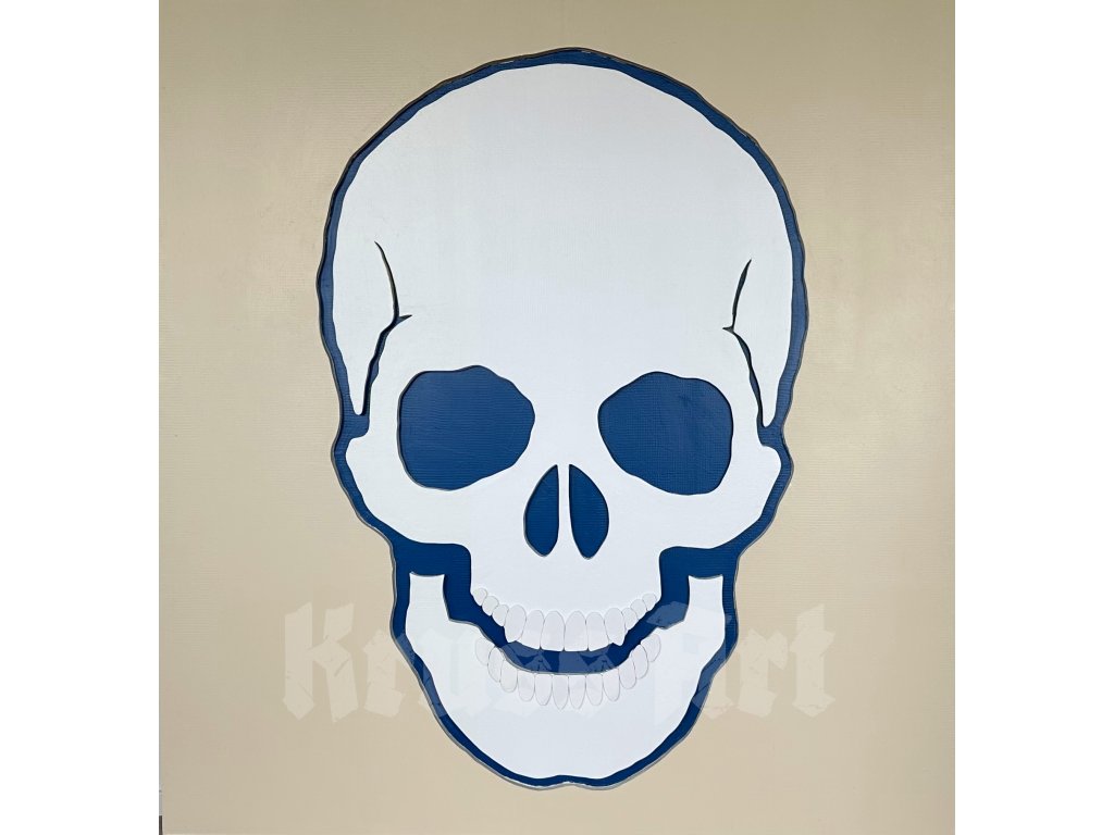 At first glance, the simple motif of a skull transforms here into a play of contrasts. White symbolizes purity and calm, while the blue outlines bring a sense of trust, stability, and openness. Together they create harmony that feels not frightening, but soothing.